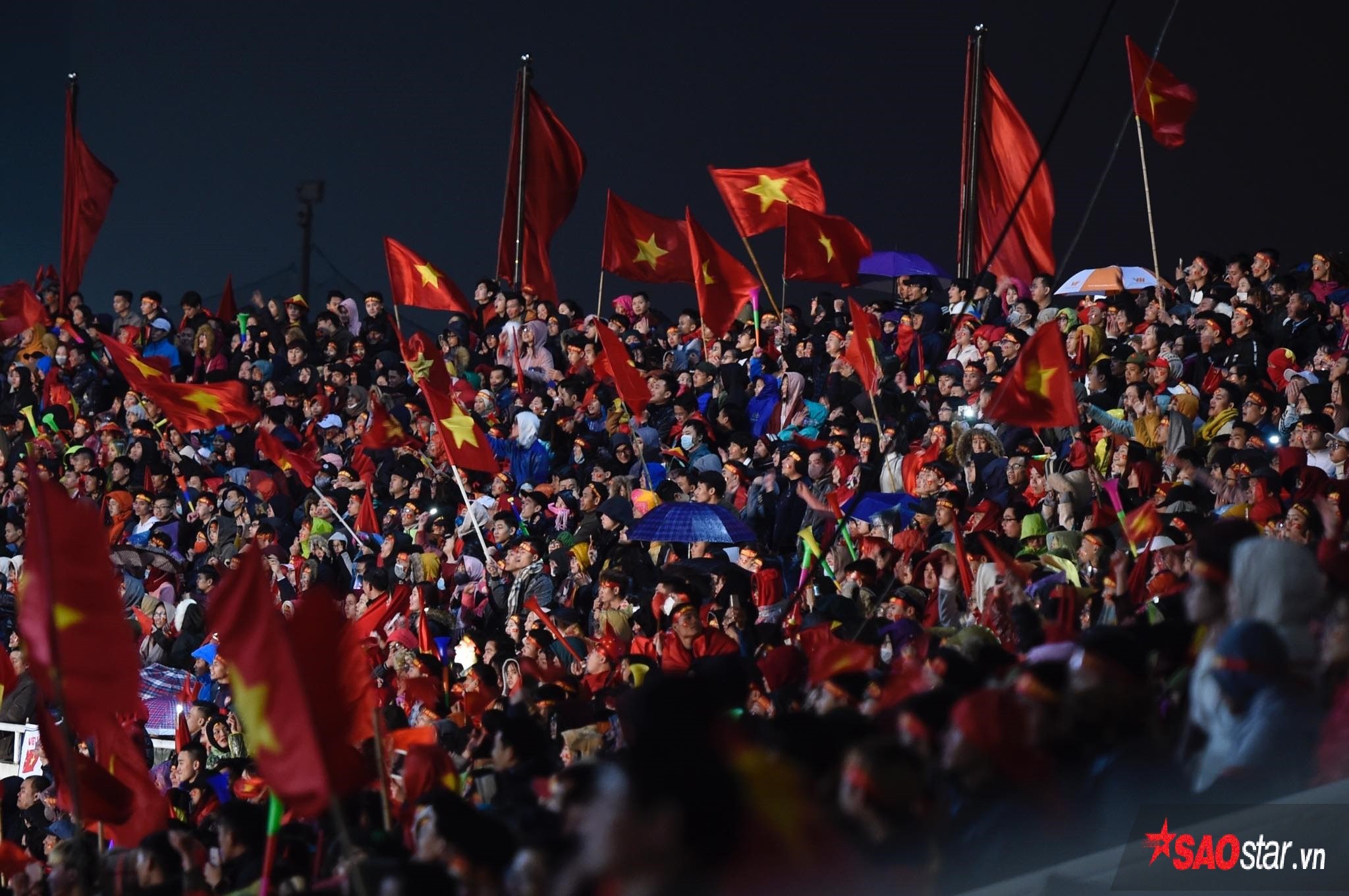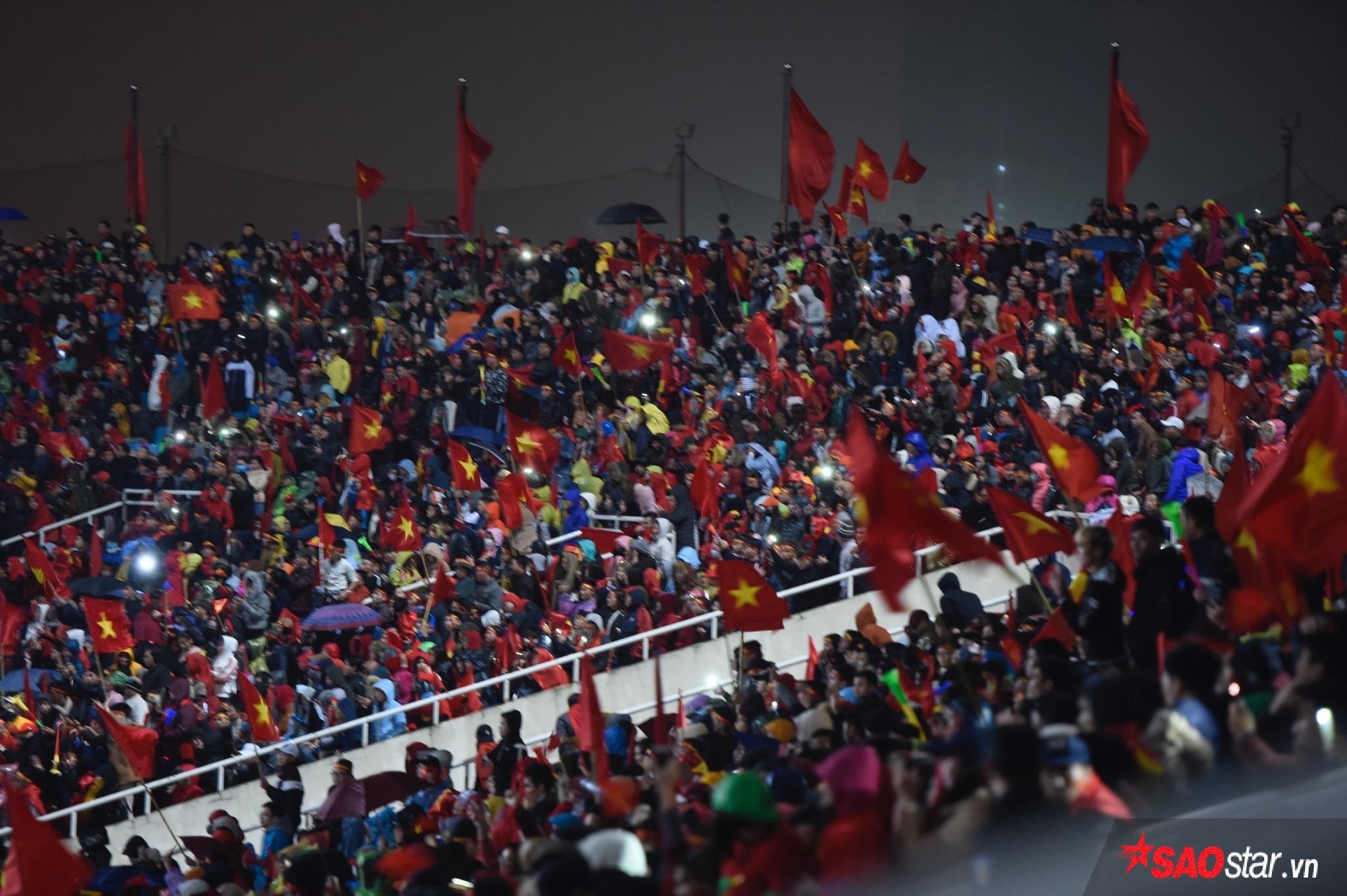 Mỹ Đình chật kín chỗ ngồi, cờ đỏ sao vàng tung bay rực rỡ khắp khán đài.