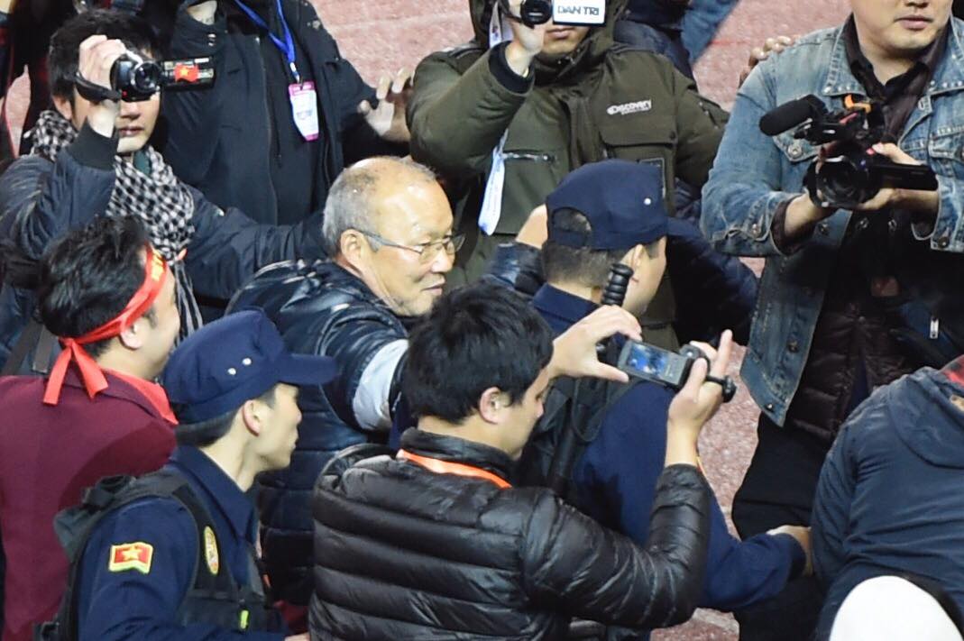 Ngay khi Huấn luyện viên Park Hang Seo xuất hiện, rất đông các nhà báo, phóng viên đã đến gặp gỡ và tác nghiệp.