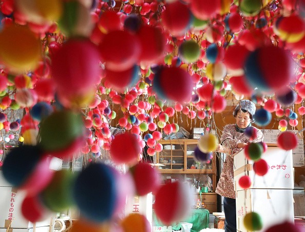 Sản xuất “bóng kén” là truyền thống trang trí năm mới ở xứ sở hoa anh đào. Người Nhật thường trang trí miếu nhà bằng những quả bóng kén nhiều màu sắc rực rỡ để cầu sức khỏe, an lành. Ảnh: Getty.