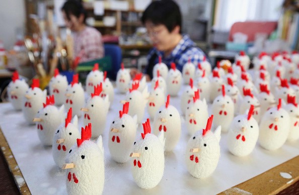 Trong khi Mỹ, Australia đón năm mới với bầu không khí lễ hội, lễ đón năm mới tại Nhật Bản sẽ diễn ra lặng lẽ hơn. Tại Tokyo, sẽ không có những sự kiện ồn ào, bởi năm mới, hay “oshogatsu”, là dịp dành cho gia đình và người thân. Hầu hết người Nhật sẽ ở nhà. Trong ảnh là những con gà được làm bằng “bóng kén” ở Morioka, được dùng để trang trí nhân dịp đón năm mới Đinh Dậu ở Nhật Bản. Ảnh: Getty.