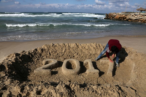 Trong khi nhiều nơi trên thế giới tất bật chuẩn bị chào năm mới, người Palesitine sẽ trải qua giao thừa trong bối cảnh căng thẳng với Israel vẫn chưa có dấu hiệu lắng dịu kể từ tháng 10/2015. Người Palestine hầu như không tổ chức ăn mừng năm mới do hoạt động này bị tổ chức Hồi giáo cực đoan Hamas cấm. Trong ảnh, một thanh niên Palestine đang tạo hình con số 2017 trên bãi biển ở dải Gaza vào những ngày cuối cùng của năm 2016. Ảnh: Getty.