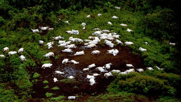 Những xác chết của gia súc bên hồ Nyos