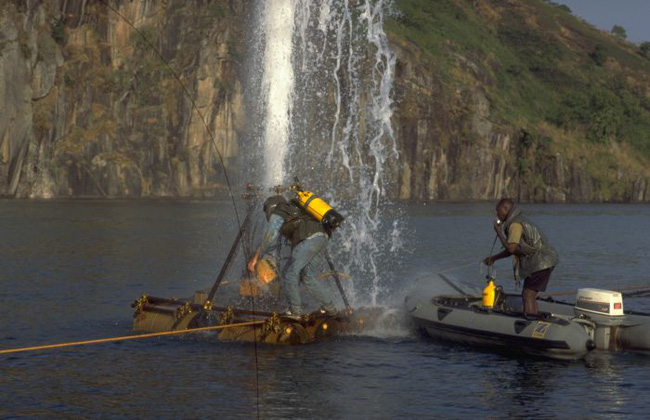 Lắp đặt đường ống thông khí dưới đáy hồ Nyos