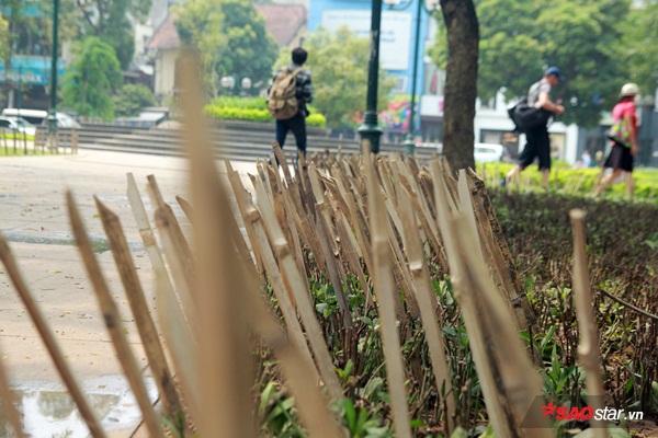 Ngày 10/4, trên một số diễn đàn mạng xã hội xôn xao về hình ảnh vườn hoa Nhà hát lớn Hà Nội, thuộc quận Hoàn Kiếm được cắm chi chít thanh tre vót nhọn hai đầu.