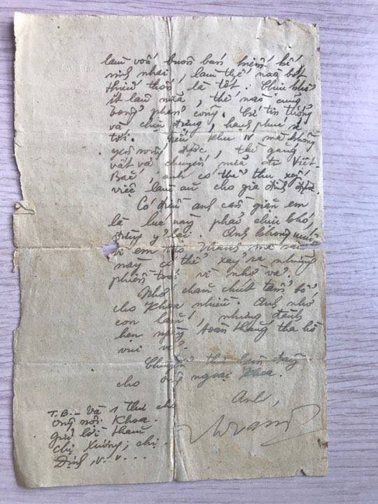 Chuyến này vì có người đi khu IV, anh gửi kèm thư này về nhà số tiền năm nghìn đồng (5.000đ) để làm vốn buôn bán kiếm kế sinh nhai, làm thế nào bớt thiếu thốn là tốt. Chịu khổ ít lâu nữa, thế nào cũng tổng phản công, cứ tin tưởng và chịu đựng, hạnh phúc sẽ tới. Tiểu khu IV mà không yên sống được, thì gắng vất vả chuyến nữa đi Việt Bắc, anh có thể thu xếp việc làm ăn cho gia đình được.