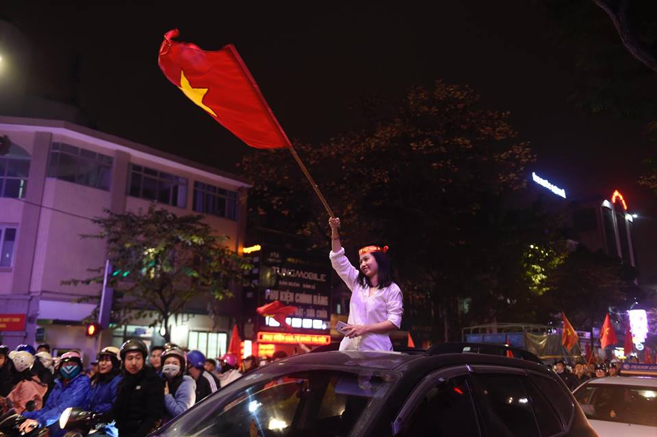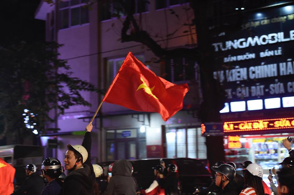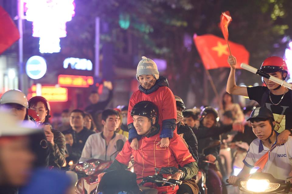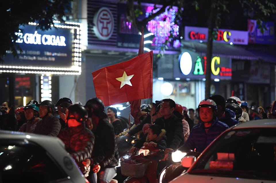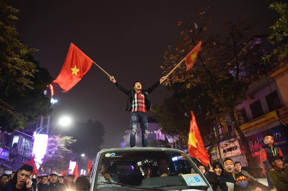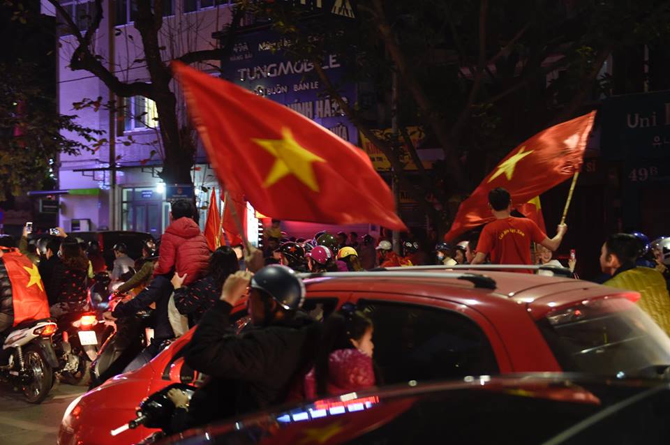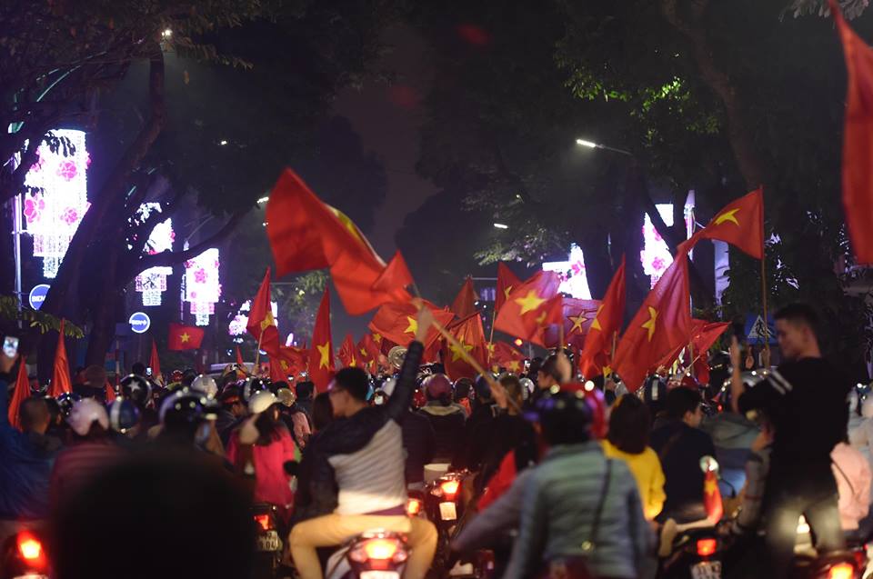 Đêm 20/1, Sài Gòn, Hà Nội và nhiều tỉnh thành khác rợp bóng cờ đỏ sao vàng. Xe cộ đông đúc như nêm. Gia đình chở cả con nhỏ đi chúc mừng. Các cụ già cũng lao ra đường. Cờ Việt Nam lên đến 200k/lá cũng đầy người mua. Tất cả đã làm nên một buổi tối siêu ý nghĩa.