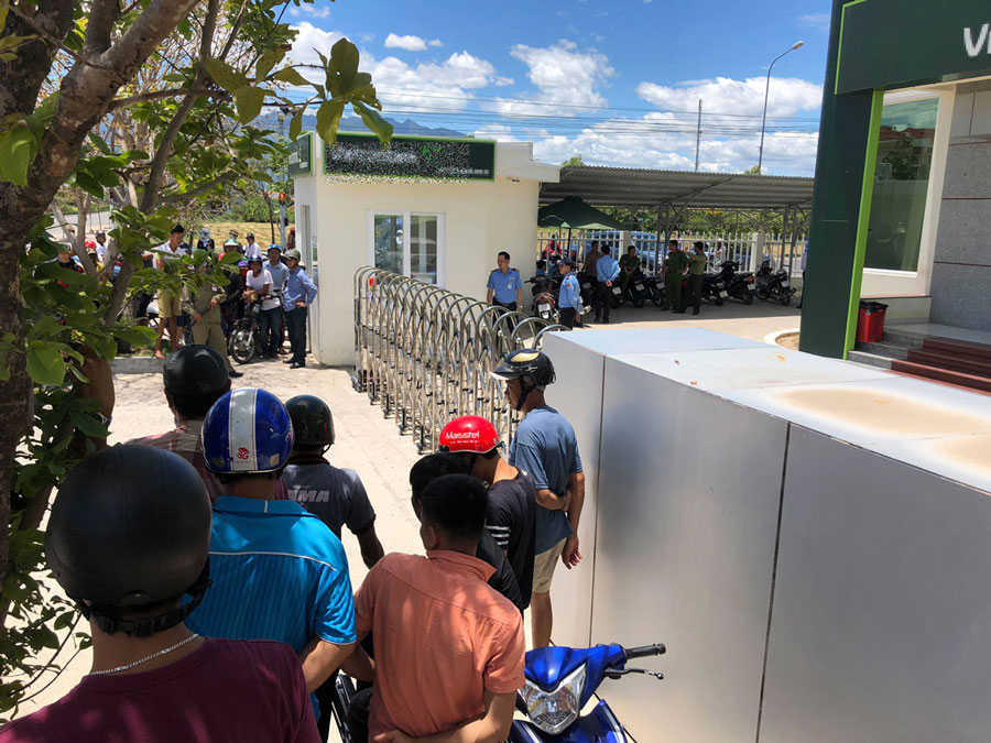 Đại diện phòng giao dịch Ninh Hòa thuộc chi nhánh Vietcombank Khánh Hòa cho biết 2 tên cướp đã cướp đi một khoản tiền mặt. Vụ việc không gây thiệt hại về người. Ảnh: báo Người lao động
