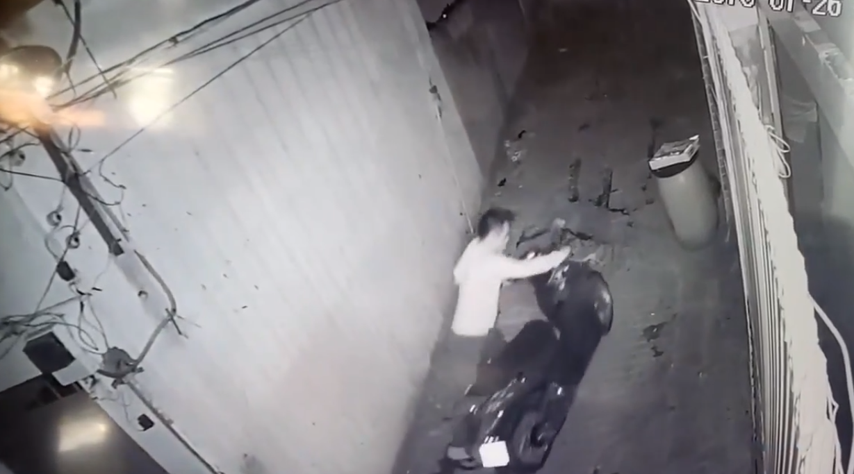 Đoạn camera ghi lại cảnh tên trộm nhanh chóng lấy đi chiếc xe SH.