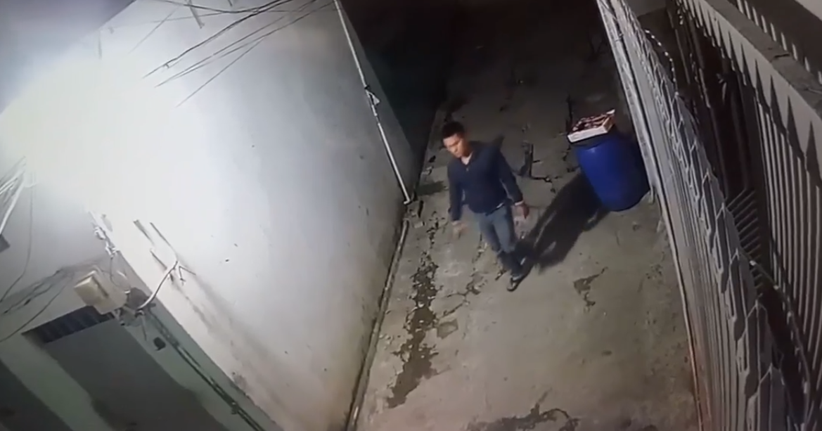 Tên trộm ngang nhiên đi vào khu trọ để thực hiện vụ trộm.