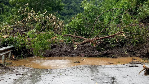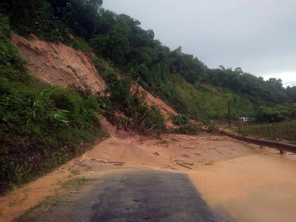 Một điểm sạt lở, gây ách tắc giao thông trên quốc lộ 7, đoạn qua huyện Tương Dương (Nghệ An). Ảnh T.Lộc.
