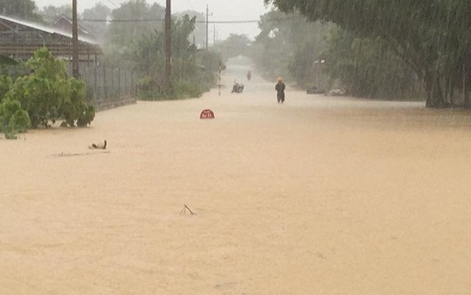Tại địa bàn Nghệ An, mưa lớn liên tiếp nhiều ngày tại các huyện miền núi như Qùy Hợp, Con Cuông… đã gây ngập lụt cục bộ, nhiều tuyến đường ngập trong biển nước. Ảnh VietNamNet