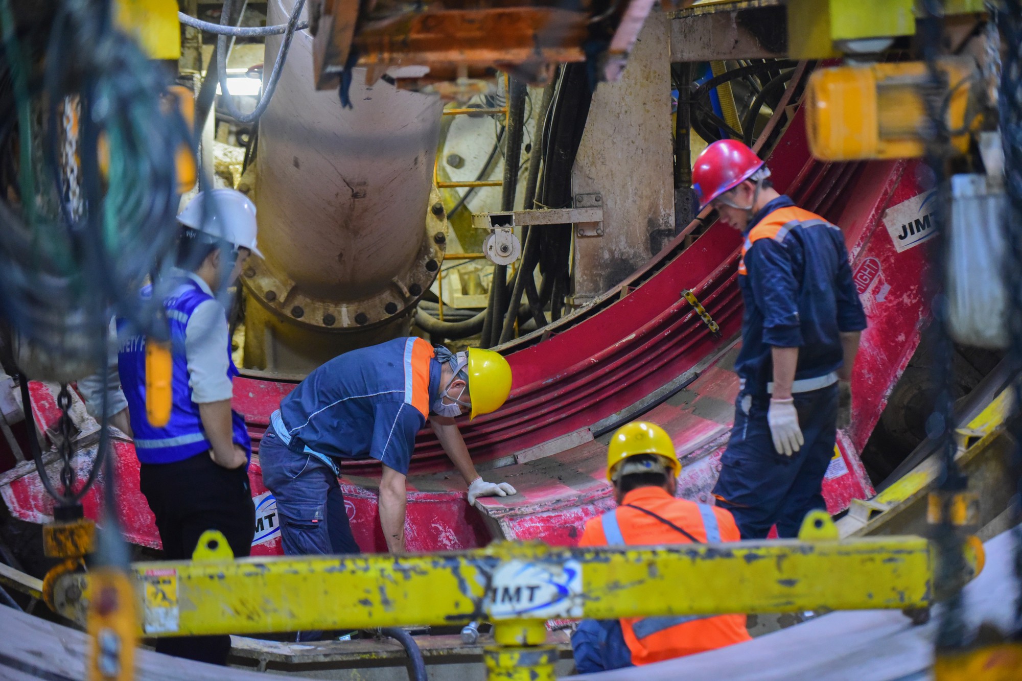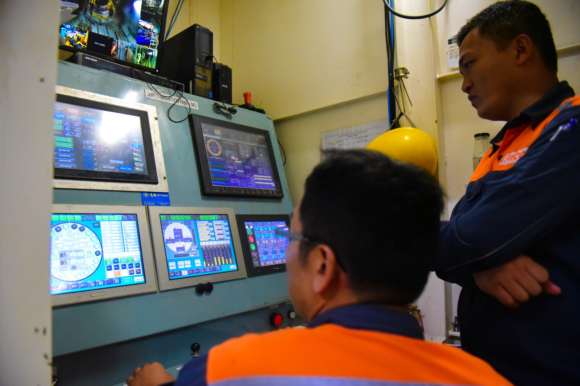 Các kỹ sư giám sát của nhà thầu theo dõi qua màn hình tại phòng điều khiển trung tâm đặt trong đường hầm, các bộ phận liên lạc thường xuyên với nhau để đảm bảo vận hành ăn ý trong quá trình thi công.