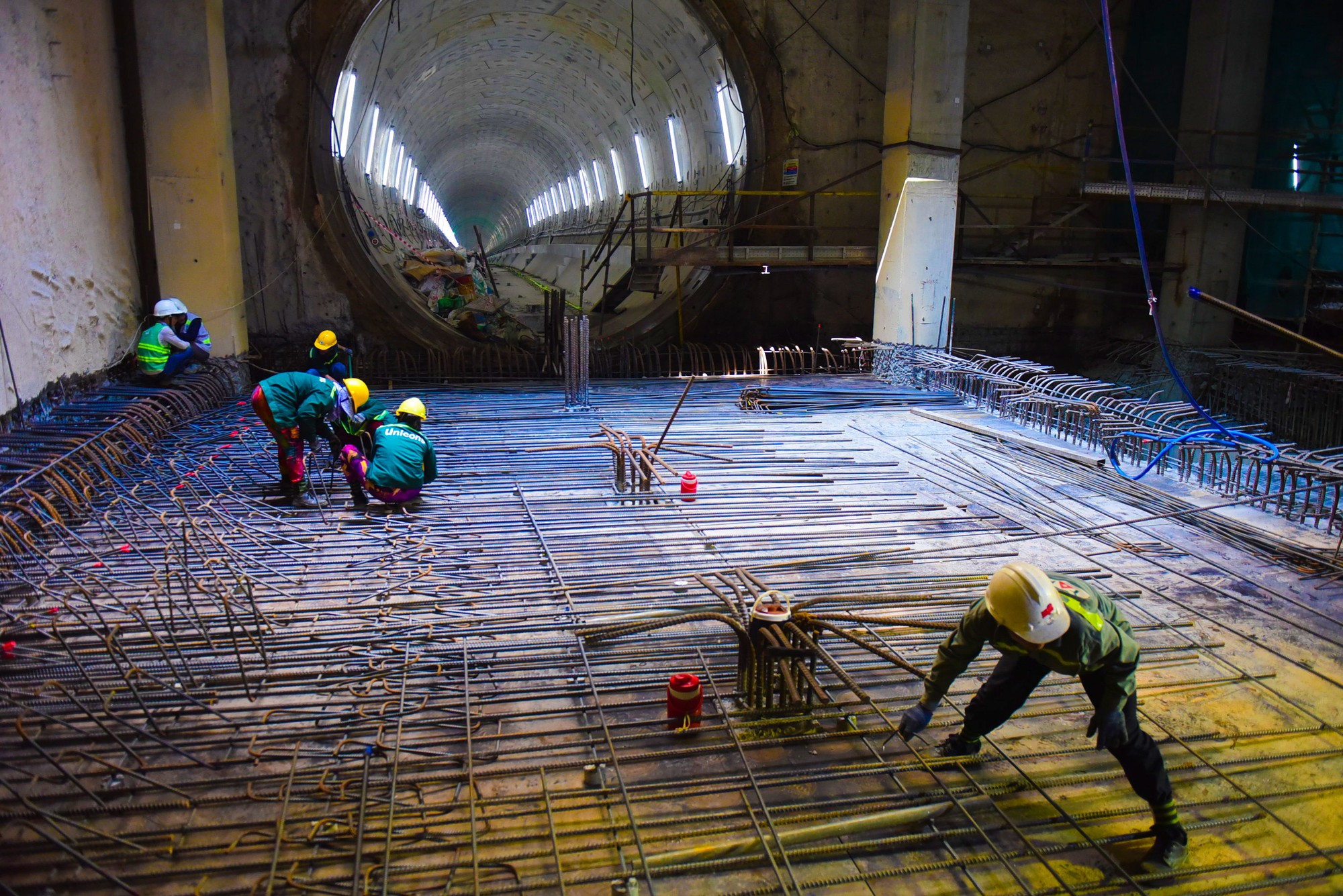 Mỗi ngày, công nhân thi công trong hầm liên tục 24/24 để hoàn thành kịp tiến độ trong khoảng 12-15/6.