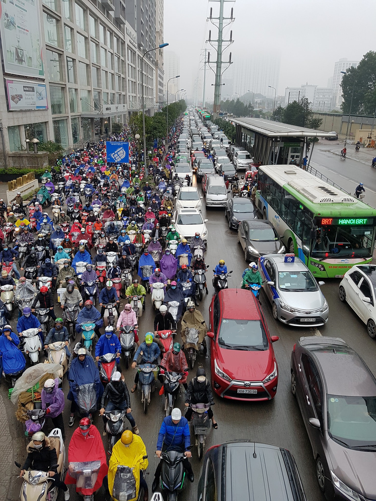 Thời tiết Hà Nội sáng nay lạnh giá kèm thêm mưa phùn khiến giao thông bị ùn tắc. Ảnh: Facebook