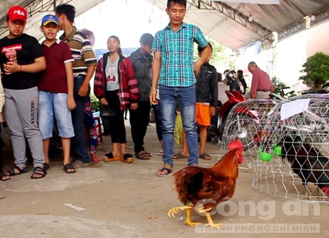 Anh Dẹn cho biết gà trống này được 10 tháng tuổi và cân nặng hơn 3kg.