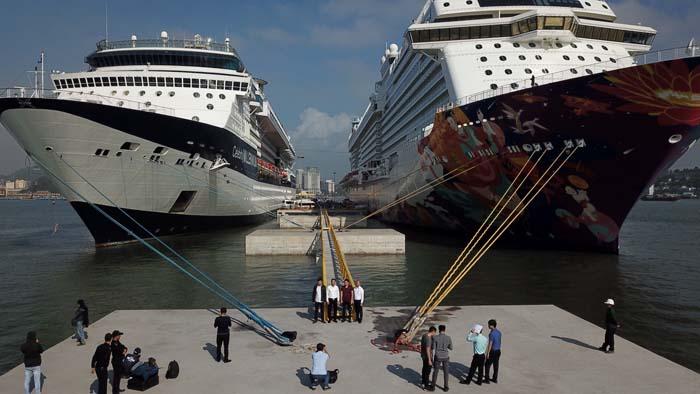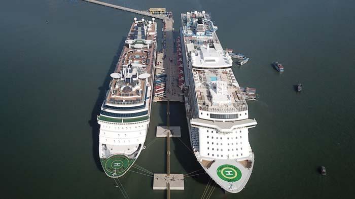 Đây là lần đầu tiên cảng tàu hiện đại nhất Việt Nam đón hai tàu quốc tế 5 sao neo đậu cùng lúc tại cảng.
