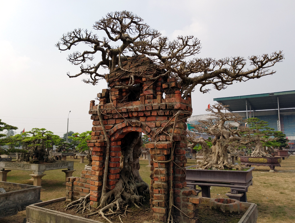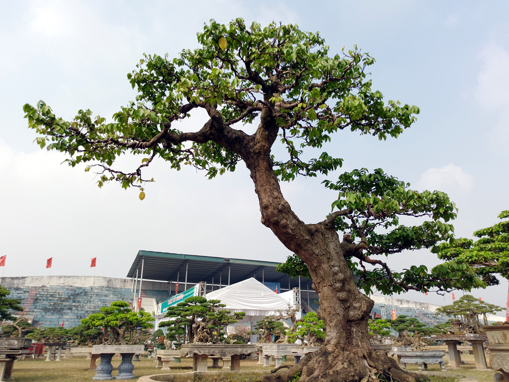 Cũng tại đây, ngoài tùng, trúc, xanh, si, vạn tuế… mà người dân vẫn thường chơi, thì việc xuất hiện các loại cây cảnh như khế, ổi, bàng, sung, me cũng mang lại nhiều ngạc nhiên cho người xem.
