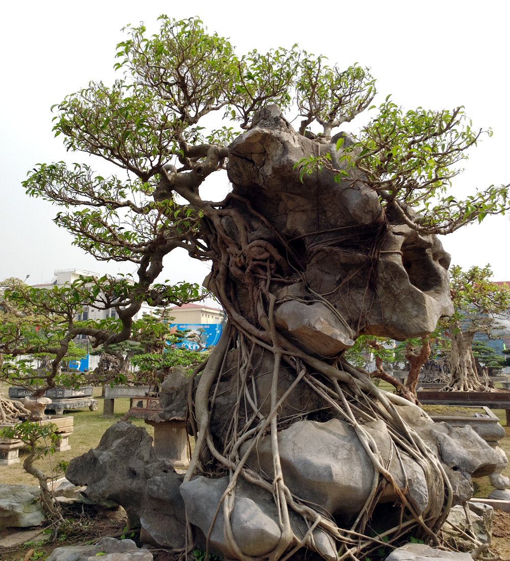 Một cây xanh biến thành hòn non bộ vô cùng độc đáo.