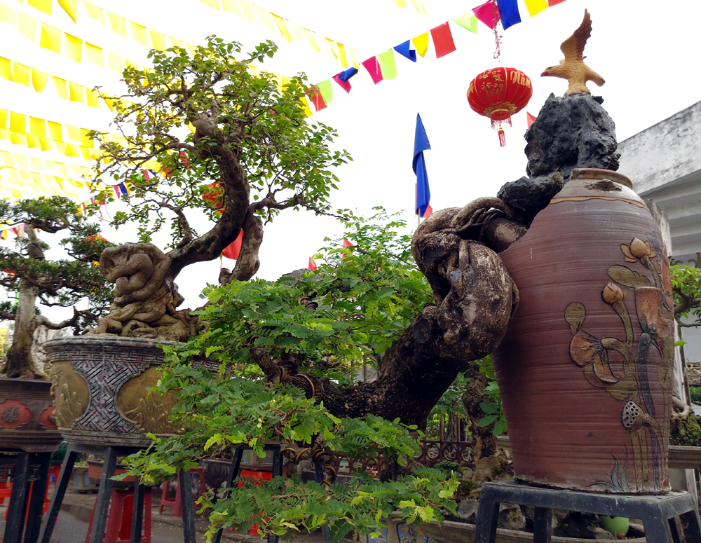 Những gốc me được đưa lên chậu bonsai vô cùng độc đáo.