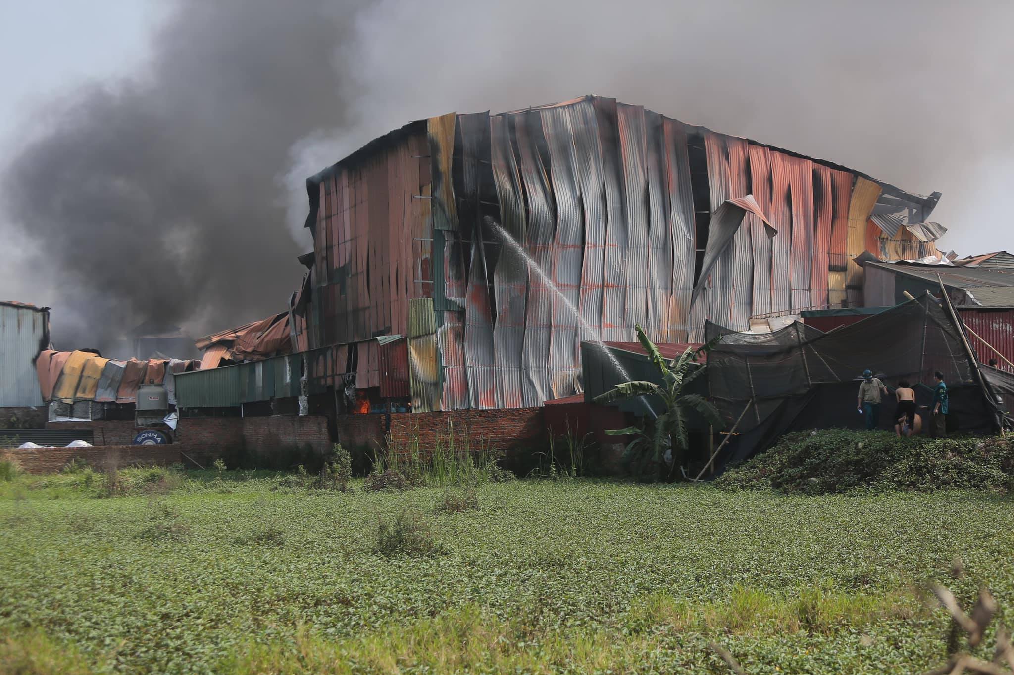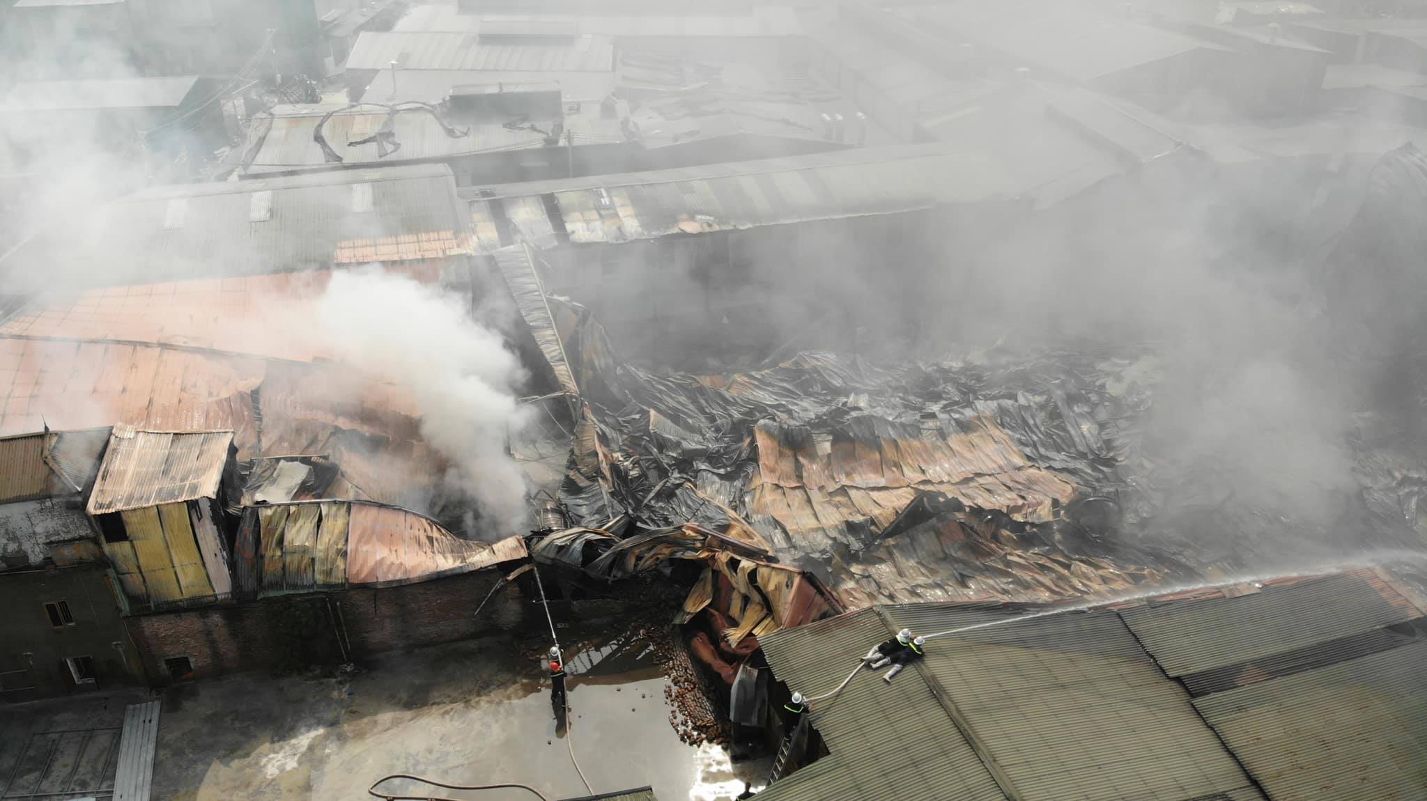 Hiện, vụ hỏa hoạn vẫn đang diễn biến phức tạp, lực lượng chức năng đang ghồng mình khống chế ngọn lửa, đề phòng cháy lan sang các xưởng xung quanh.
