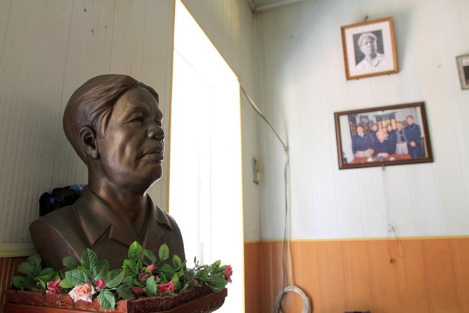 Bức tượng cố Tổng Bí thư Đỗ Mười và một số hình ảnh của ông được đặt, treo trang trọng trong nhà.