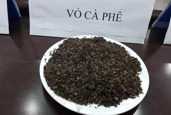 Vỏ cà phê thu giữ tại cơ sở bà Loan. Ảnh Trùng Dương.