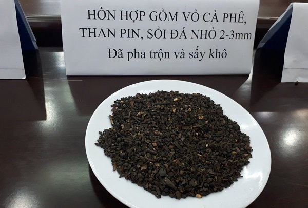Trước đó, lực lượng chức năng kiểm tra xưởng nông sản của bà Loan tại thôn 3, xã Đắk Wer, huyện Đắk R’lấp và bắt quả tang nơi đây đang pha trộn bột lõi pin vào cà phê phế thải. Ngành chức năng thu giữ tại cơ sở này hơn 21 tấn phế phẩm cà phê đã nhuộm đen, đóng trong bao bì, 35 kg pin bị đập dẹp, 192 kg lõi, nắp, vỏ pin, 40 lít dung dịch.