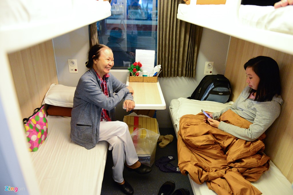 Anh Trần Duy Tân tiễn mẹ là Cao Thị Vân Minh về Nha Trang tỏ ra an tâm khi mẹ về quê trên chuyến tàu mới. Cô Minh cũng chia sẻ lần sau có đi vẫn sẽ tiếp tục đi tàu “5 sao” vì giá thành hợp lý.
