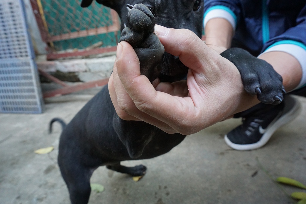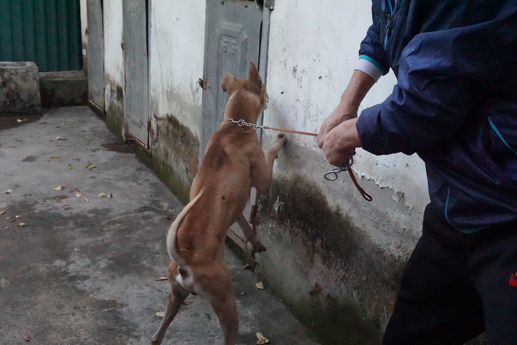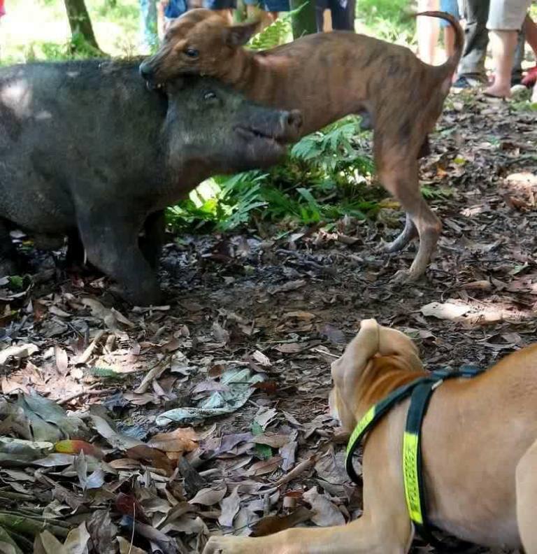Hình ảnh chú chó Phú Quốc được anh Thắng đặt tên là 30 săn con lợn rừng hơn 100kg.