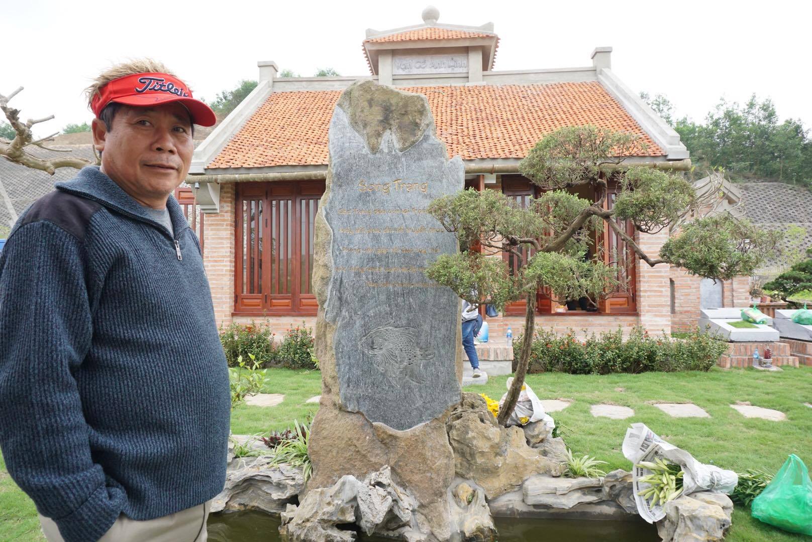 Ông Sơn bảo không phải ngày Tết Thanh minh hay ngày giỗ, chạp mới lên đây mà có khi tháng 4,5 lần mọi người trong gia đình lại lên thắp hương tưởng nhớ tổ tiên. Một góc khuôn viên được thiết kế khang trang. Trước cửa lối vào phần mộ có bia đá tưởng nhớ về tổ tiên.