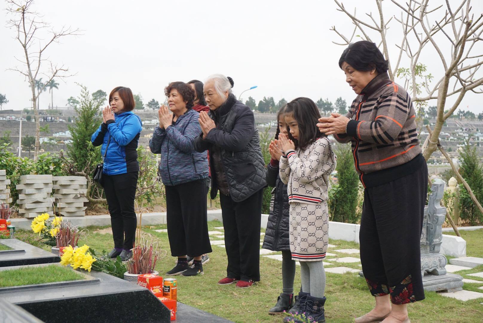 Tại Công viên nghĩa trang Lạc Hồng Viên, huyện Kỳ Sơn, tỉnh Hòa Bình những ngày này rất nhiều người trong gia đình, dòng họ quây quần về đây vái vọng tổ tiên, viếng những người thân đã khuất.