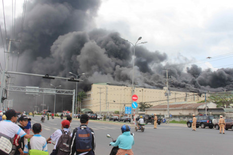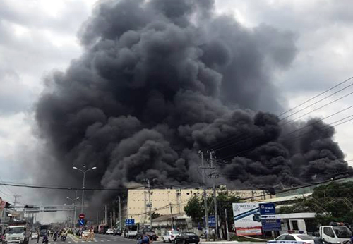 Cột khói đen khổng lồ từ vụ cháy. Ảnh Vnexpress