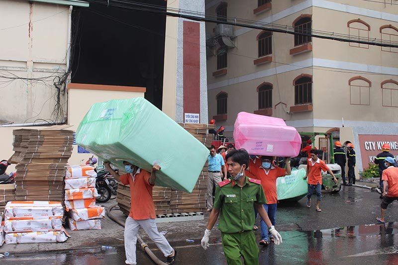 Toàn bộ lực lượng chữa cháy của Sở cảnh sát PCCC đã có mặt. 8 xe chữa cháy và 2 xe thang cao tầng được huy động đến hiện trường chữa cháy. Người dân sống xung quanh khu vực nhà máy nhanh chóng được sơ tán đến nơi an toàn.