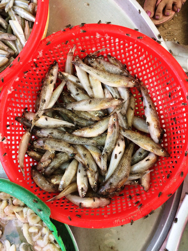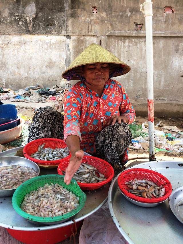 Ruồi bu đen ngòm sạp cá của bà Phan Thị Thơm.