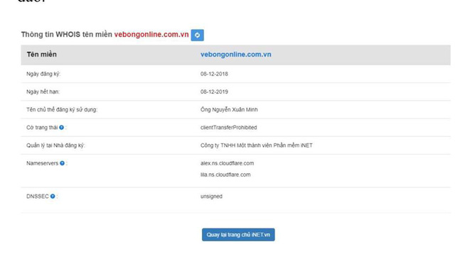 Thông tin liên quan về người sở hữu trang web bán vé giả mạo của Liên đoàn bóng đá Việt Nam.