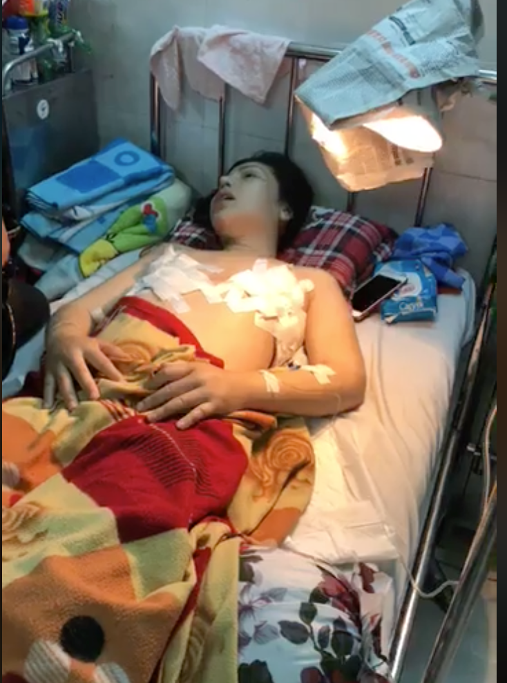 3 ngày sau, chị vẫn mê man, máu truyền liên tục vì thiếu. Hôm đầu tỉnh, thấy mình phẳng lì, chị khóc. Bác sĩ phải hứa đã giữ lại phần đầu ngực, chị mới thôi.