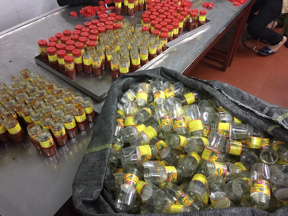 Tại đây, lực lượng chức năng đã thu giữ gần 3.000 lọ sa tế thành phẩm, số lượng lớn sa tế đã qua chế biến đang chờ đóng hộp, hàng nghìn lọ, vỏ nhãn hiệu, máy đóng gói…