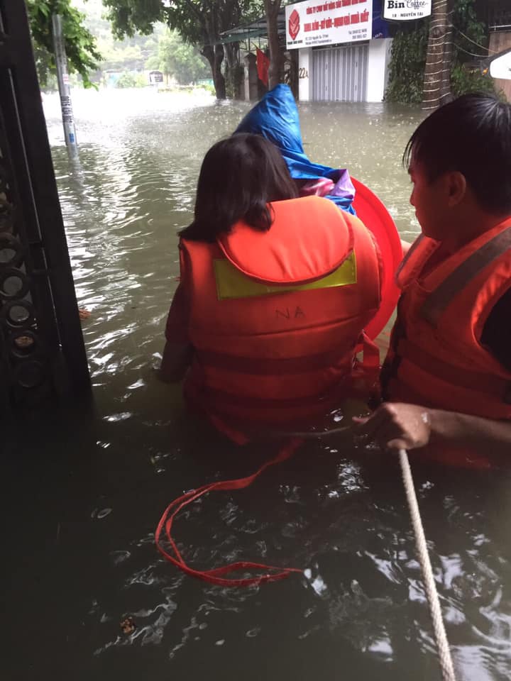 Sau khi đến vị trí trên, cảnh sát mất hơn 30 phút bơi dọc theo đường Nguyễn Tài để tìm đến ngôi nhà cấp 4 có người dân đang mắc kẹt. Theo một chiến sĩ cảnh sát cho biết, đoạn đường vào đến nhà dân khoảng 300m nhưng nước ngập sâu gần 2m, chảy xiết.