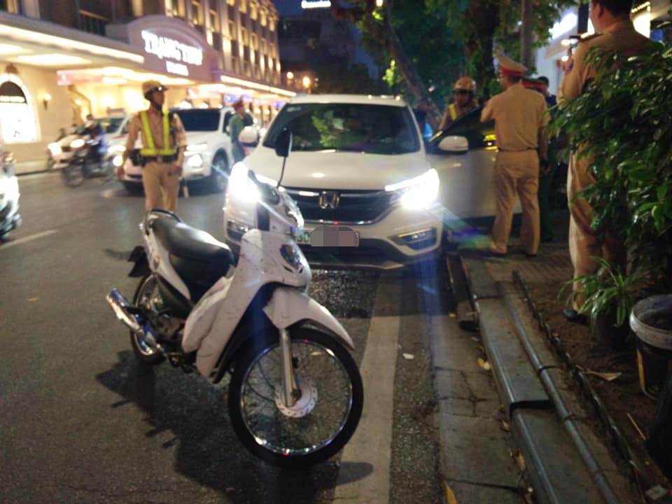 Theo đó, vào khoảng thời gian trên, người tham gia giao thông đã báo tin về trường hợp xe ô tô CRV màu trắng BKS 30F-471xx đỗ giữa đường trong khi máy vẫn nổ.
