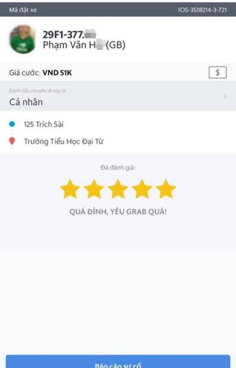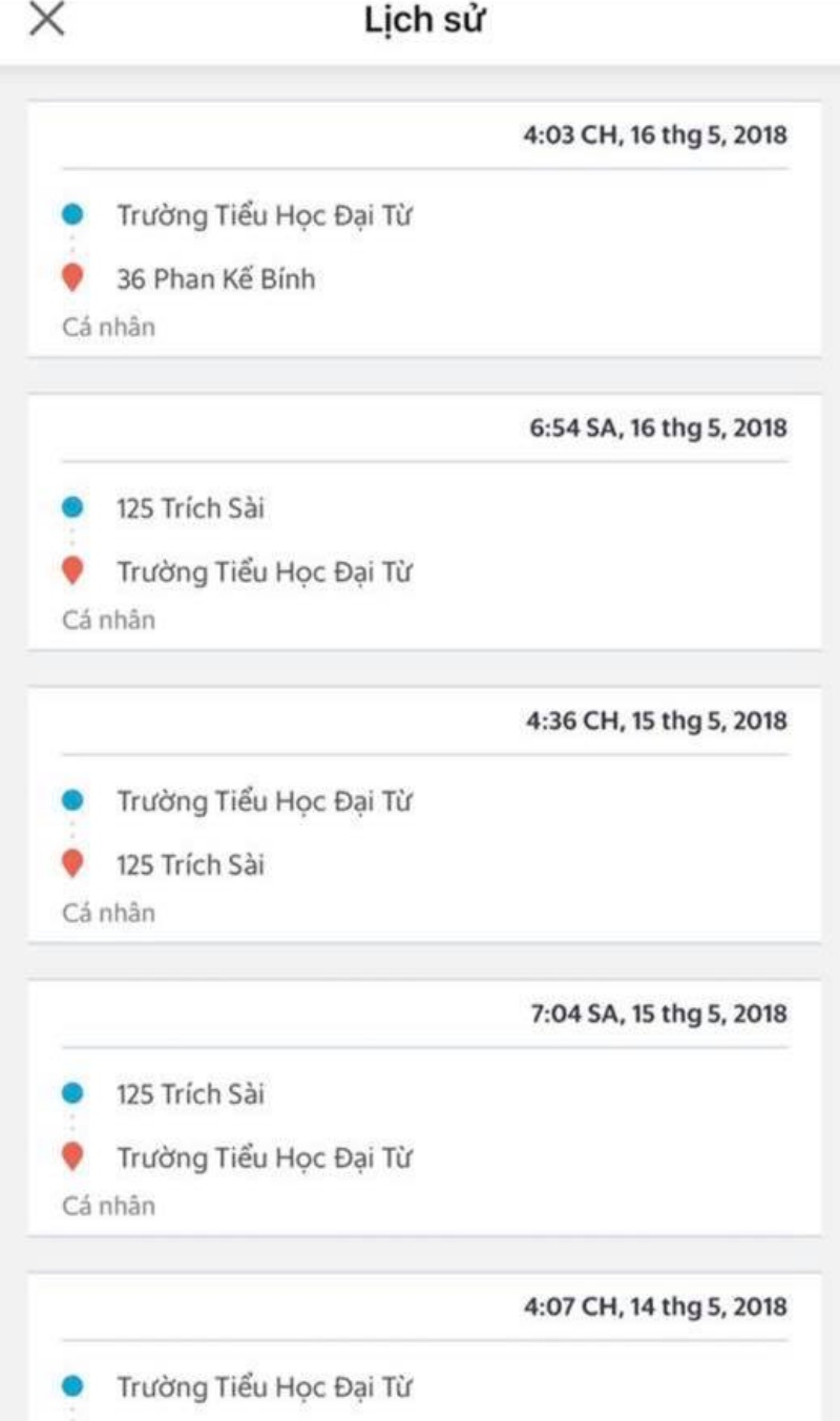Trước đó, ngày chị L. có đặt GrabBike cho con gái đi học như thường lệ, quãng đường chị L. đặt từ Trích Sài đến Đại Từ. Tài xế GrabBike nhận chở con gái chị là Phạm Văn H. Suốt quá trình con đi học, chị L. vẫn dõi theo con trên ứng dụng đề phòng tài xế đi lệch cung đường.