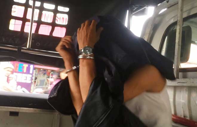 Đối tượng bị bắt giữ và áp tải về trụ sở.