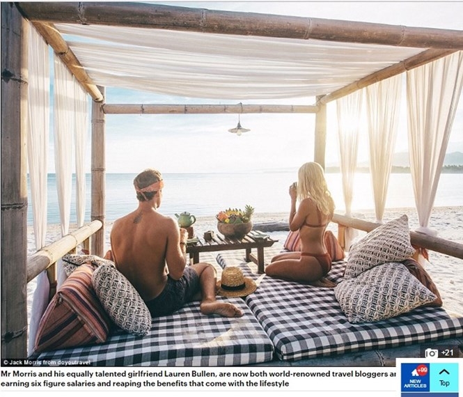 Từ bỏ công việc để đi du lịch vòng quanh thế giới có lẽ là điều không tưởng với nhiều người nhưng với cặp đôi Jack Morris, 26 tuổi và Lauren Bullen, 24 tuổi, đó là quyết định sáng suốt bởi họ còn có thể thu về 200 triệu đồng từ việc chia sẻ một bức ảnh du lịch lên Instagram.
