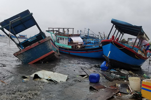 Sóng lớn đánh khiến nhiều tàu thuyền hư hỏng. Ảnh: Báo Khánh Hòa