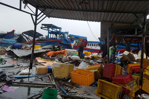 Khung cảnh tan hoang ở bến cá Cam Lợi. Ảnh: Báo Khánh Hòa.
