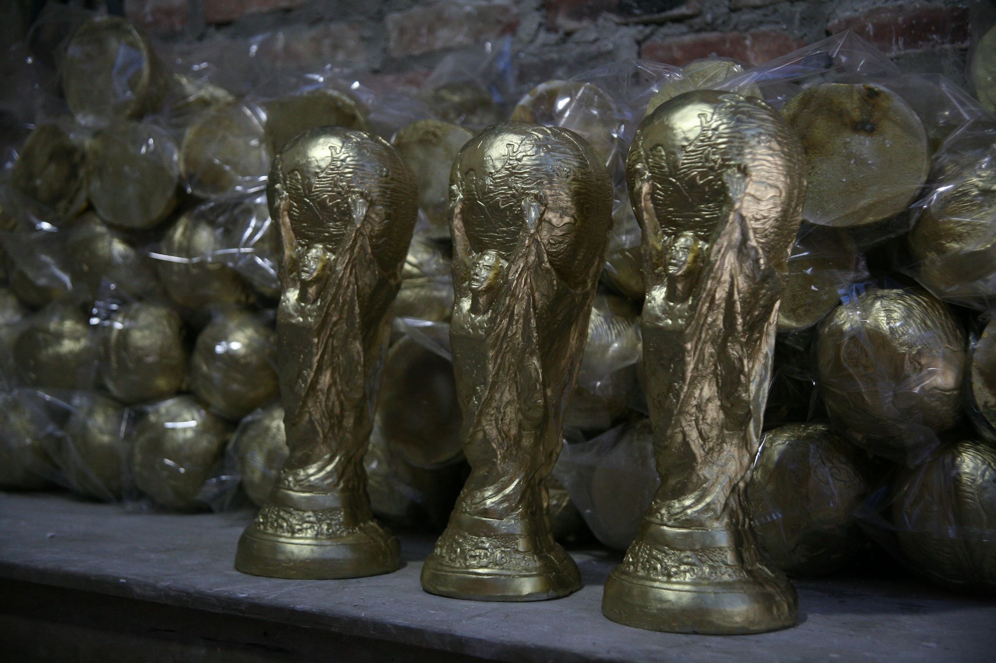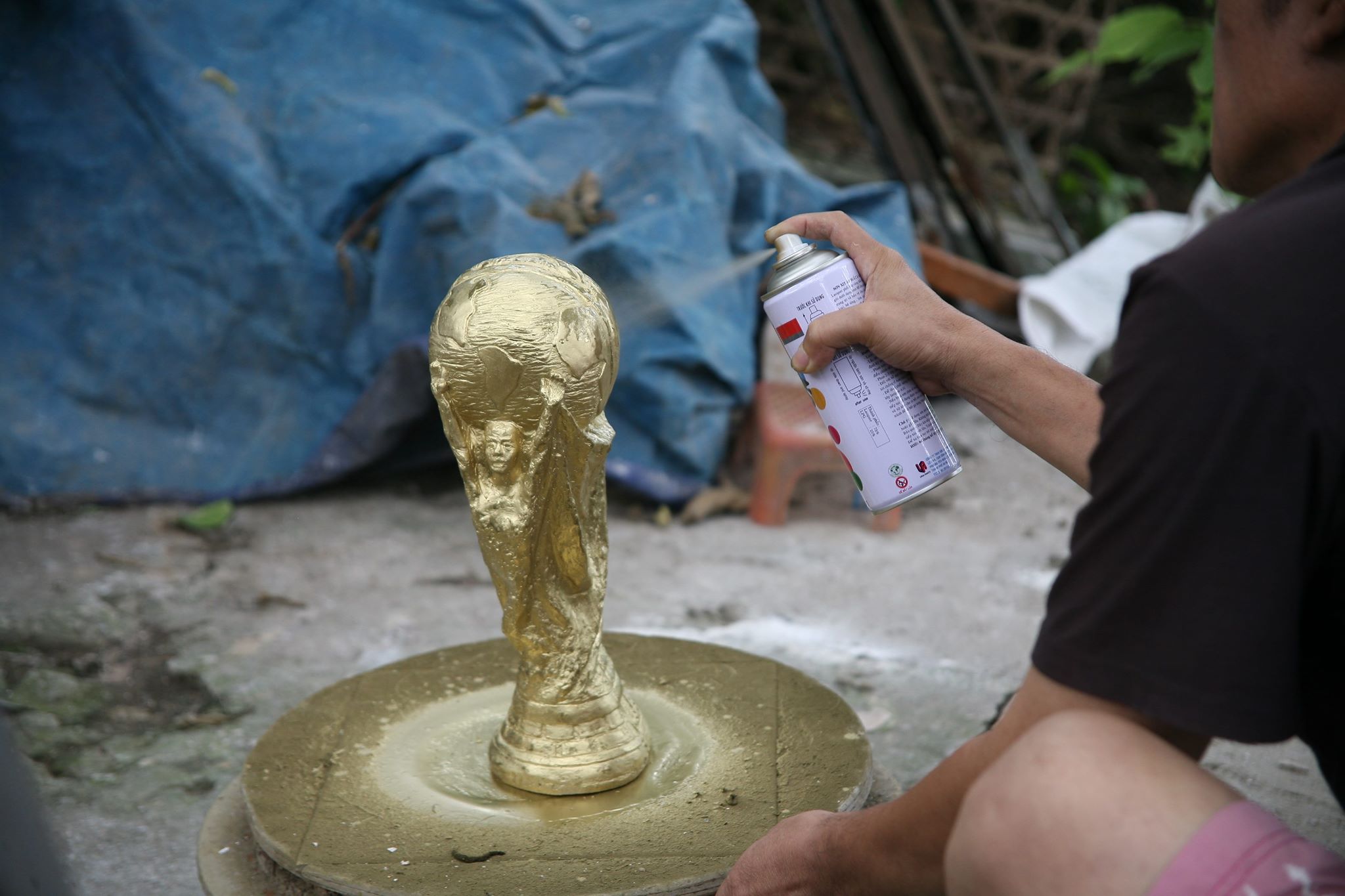 Năm nay, dự kiến, gia đình ông Nhật sẽ làm ra 3.000 chiếc phục vụ trong suốt mùa World Cup. Để làm ra những chiếc “cúp vàng” giá siêu rẻ này từng người thợ giúp việc cho ông Nhật đều rất tỉ mẩn, cẩn thận.