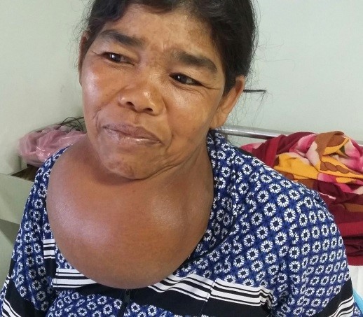 Trước đó, ngày 16/1, bệnh viện tiếp nhận bệnh nhân K.B (45 tuổi, dân tộc Gia Rai, trú xã Ia Boòng, Gia Lai) bị bướu giáp lớn dần 35 năm đạt kích thước khổng lồ 150x140x130mm, nặng hơn 2,5 kg.