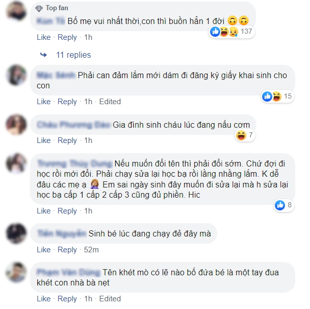 Dân mạng nhanh chóng nổ ra những phân tích về cái tên này, có thể đó là sản phẩm của quá trình chỉnh sửa ảnh tinh vi hoặc do cô tiếp tân ngẫu hứng gõ nhầm, nhưng nếu thật sự đó là cái tên được cha mẹ em rút ruột đặt nên, thì cư dân mạng đã có vô số những lời bình luận dành cho cái tên này đây.