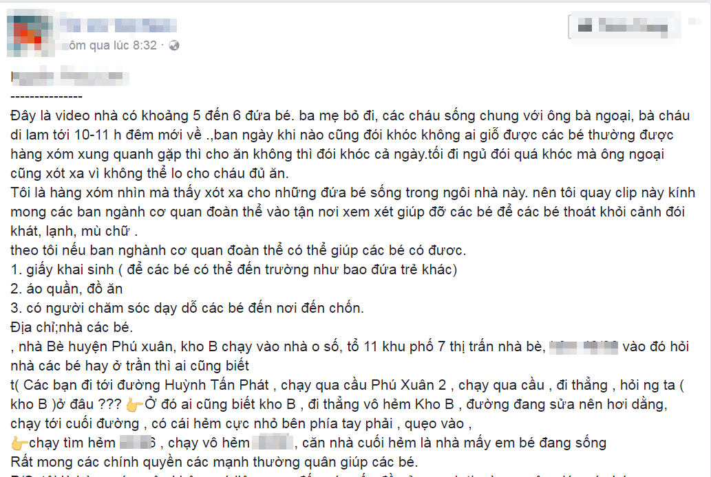 Theo thông tin đính kèm mà đoạn clip này đăng tải thì cảnh tượng này hầu như xuất hiện mỗi ngày do cha đã bỏ đi, mẹ các cháu không quan tâm, ông bà ngoại lại bận đi làm. Các em thường xuyên phải sống trong tình cảnh: Tự chăm sóc lấy nhau!