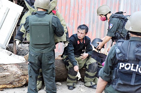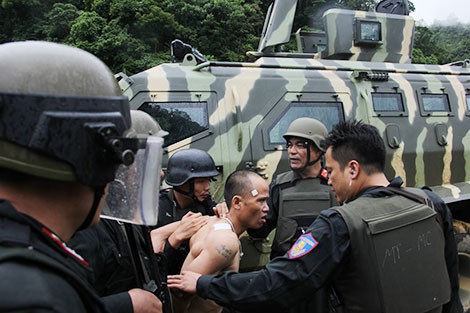 Vừa bước chân vào cổng Công an huyện Vân Hồ, tôi thấy Đại tá Phùng Tiến Triển, Phó Giám đốc Công an tỉnh Sơn La, mặc áp giáp, đội mũ, chỉ đạo tổ công tác khoảng gần 100 CBCS mang theo súng leo lên các xe đặc chủng, xe rà mìn, xe chữa cháy… cùng người nhà của đối tượng Tuân và Hùng tiếp tục vào bản Tà Dê kêu gọi các đối tượng quy hàng…