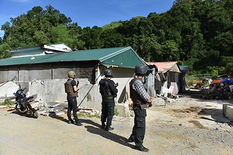 Quan sát, tôi thấy nhiều mảng tường đã ám khói đen nhẻm, bao trùm cả phía trên do các đối tượng gây nổ bình gas, can xăng mà rùng mình nghĩ đến cuộc chiến đấu khốc liệt của lực lượng công an khi tiêu diệt 2 tên trùm ma túy.